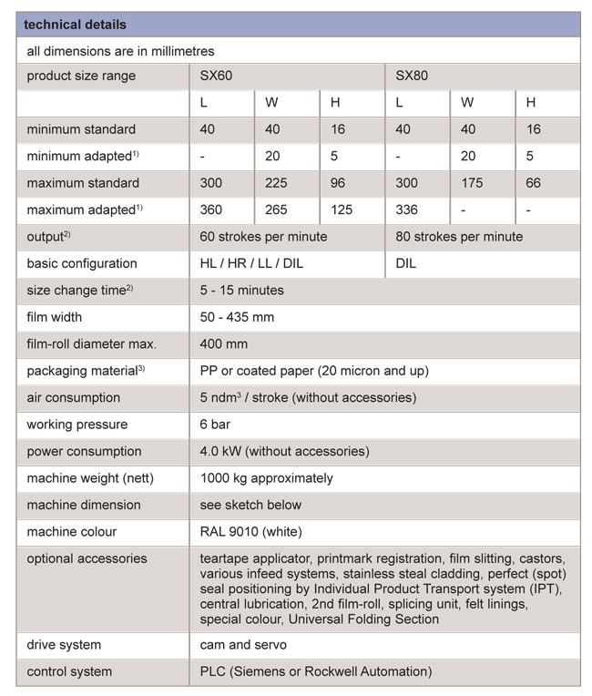The Sollas SX60 can be provided with a folding section to handle products up to 96 mm, 125 mm or even 140 mm high. The SX80 can handle products up to 96 mm high. Both models can also be provided with the revolutionary Universal Folding Section that requires no change parts.